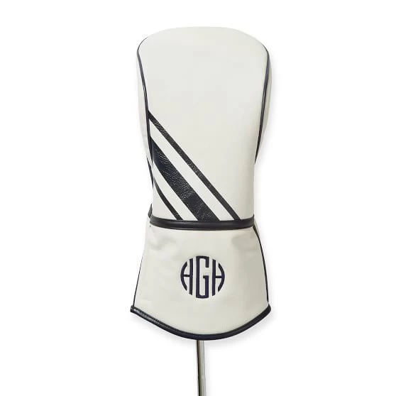Made from wipeable faux leather with a preppy stripe design, our new golf club cover is the perfect way to keep your clubs protected. Designed to fit up to a 460cc driver, this expandable headcover features a Velcro closure that makes removing and replacing clubs quick and easy. Add a custom embroidered monogram for a thoughtful gift for your favorite golfers or to add a personalized touch to your clubs.