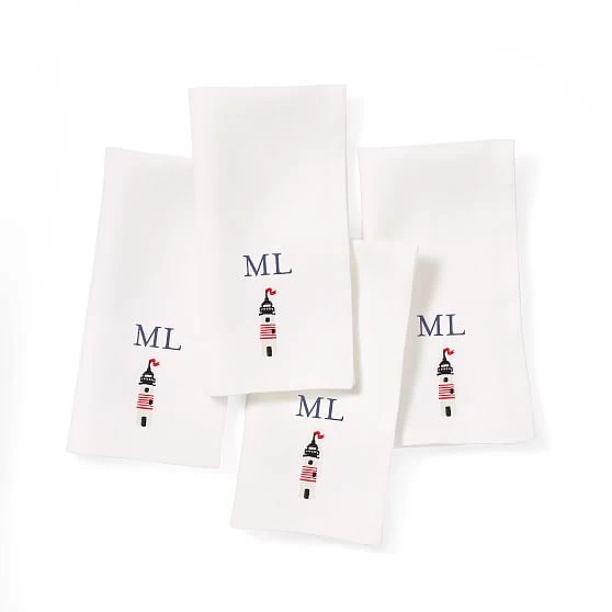 • Monogramming is embroidered. The monogram will be the same across all four napkins.