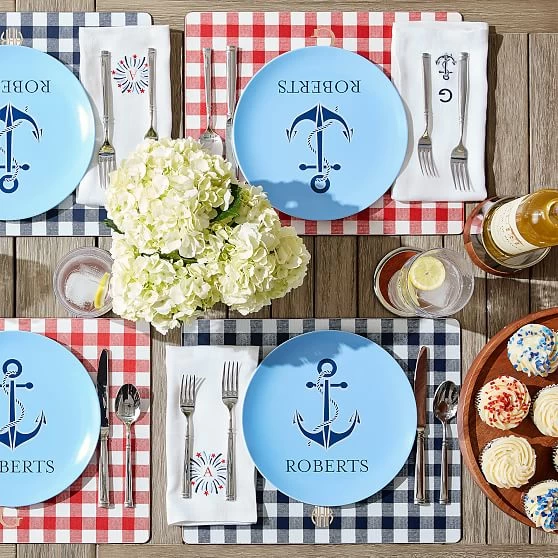 A simple way to refresh your tablescape, these beautiful embroidered dinner napkins feature new, summer-inspired designs. Embroider a set of four with family initials for a personal touch—a thoughtful gift any family would love.