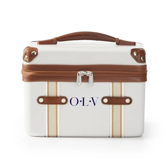 Pack up the whole kit and caboodle with the terminal 1 Cosmetic Case. Designed with a durable and lightweight polycarbonate exterior, this vintage-inspired makeup carrying case is the ultimate way to take your cosmetics with you while you travel. Small enough to pack into your larger suitcases but spacious enough to fit all of a makeup lover’s favorite things, the cosmetics case features a leather carry handle, a zip-around closure and plenty of internal pockets to keep you organized. Add a decal monogram to make it yours.