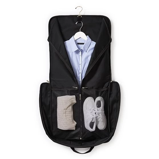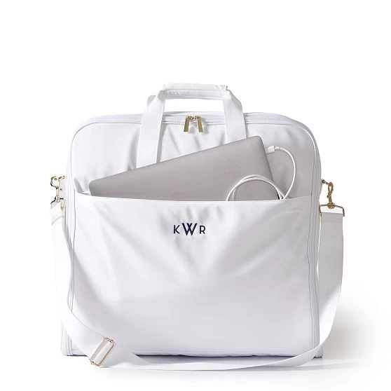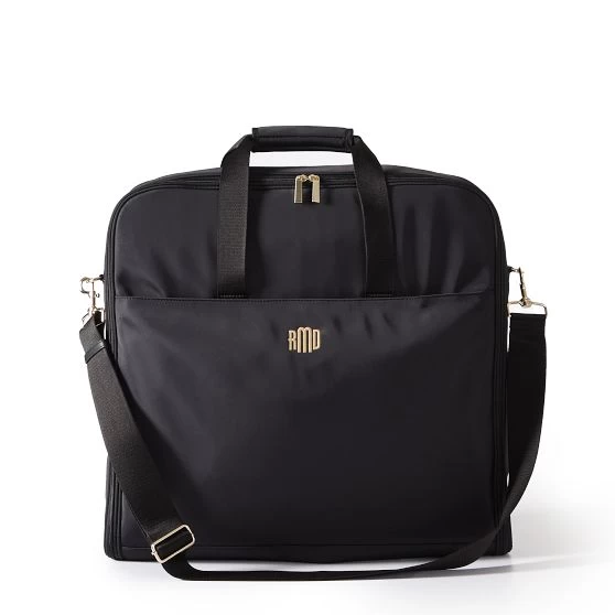 With sleek styling that includes more features than meet the eye, the Terminal 1 Garment Boarding Bag combines protection for your finest clothes with the functionality of a travel tote. The exterior zippered pocket can accommodate a laptop or notebook. The interior features loops for hooking your hangers and mesh pockets keep shoes or other accessories organized. Features top handles, an adjustable crossbody strap and a trolley passthrough strap for attaching to your luggage handle. With enough space for a few suits or your bridal or special occasion dresses, it’s great for frequent work travelers or destination weddings. Add an embroidered monogram for a personal touch.