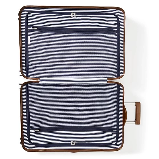 Designed for extended stays and those who prefer not to travel light, our large checked luggage is made to fit more into every trip. This best selling luggage will set you apart from the crowd with luxurious leather detailing and a personalized monogram. Made from durable polycarbonate that is incredibly lightweight, our large checked luggage features a TSA approved personal lock, an easy-telescoping handle and oversized wheels that can spin 360 degrees to help you navigate the airport with ease. Designed to last, each large checked spinner comes with a lifetime limited warranty so if it breaks, we’ll replace it – guaranteed. Buy the large checked spinner individually or invest in a luggage set for yourself or as the ultimate gift for anyone who loves to travel.