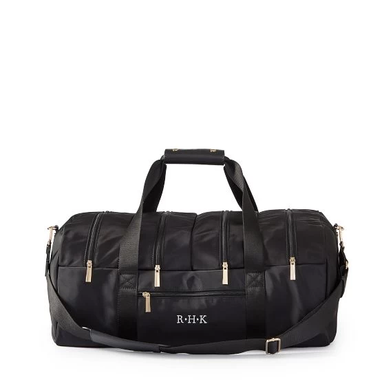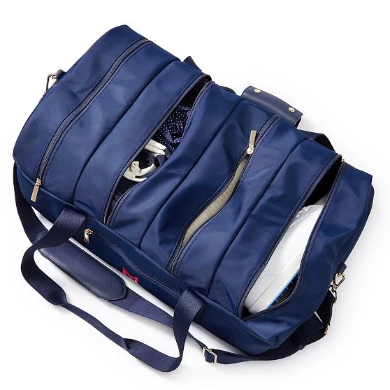 For the ultimate organized traveler, or those to aspire to be, this thoughtfully designed duffle features four individual zipper compartments that make packing easier than ever. Keep everything you need tidy by separating shoes from delicates and accessories from apparel. Made from recycled polyester twill with leather accents for an elevated aesthetic. Add your monogram to make it one-of-a-kind.