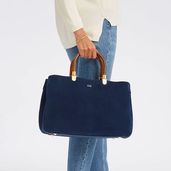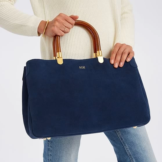 Meet our Italian-made icon, refreshed with faux tortoiseshell handle and sleek gold hardware for a sophisticated accent. Handcrafted from gorgeous Italian suede leather that only gets better with age, the Elisabetta’s classic silhouette is both simple and elegant, polished enough for formal occasions yet relaxed enough for everyday use. The thoughtful construction features tortoise handles, and an internal zippered section which divides the bag into three compartments, so you can organize all of your daily essentials. Add a subtle foil debossed monogram to make it yours.