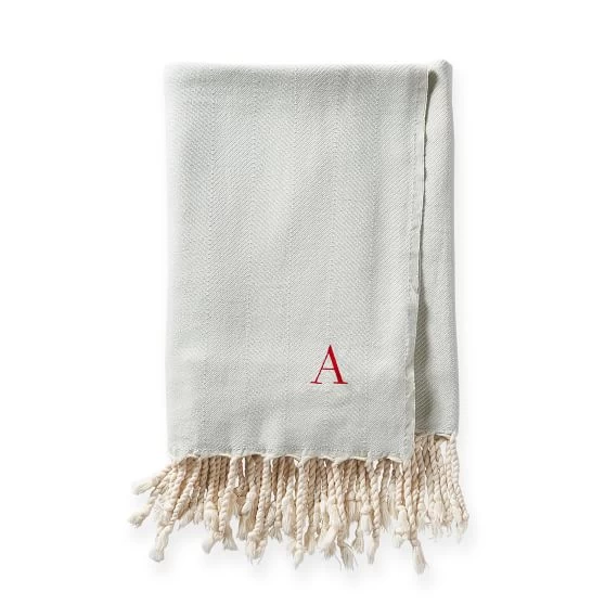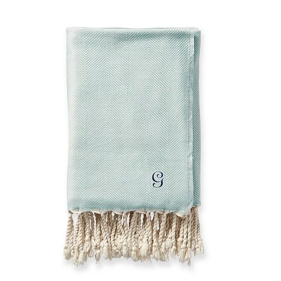 The perfect throw for any season, this ultra-soft herringbone throw is woven from lightweight cotton and finished with a fringe edge. Made in Turkey, this cozy accent piece can be gifted with a contrasting monogram for an unexpected pop of color. Fold it over a chair or take it with you on the go as a warm, yet lightweight wrap.