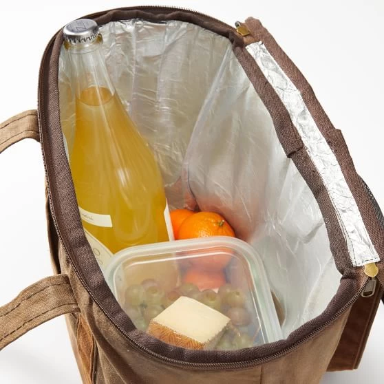 Made from a durable canvas that’s been treated with a protective wax coating (so it’ll age beautifully over time), this Waxed Canvas Cooler Tote keeps food and drinks cool or hot and can be embroidered with a monogram for a personal touch. Available in navy, red or olive, this handy cooler bag features an interior mesh pocket to keep smaller items secure and an exterior outer pocket for extra storage.