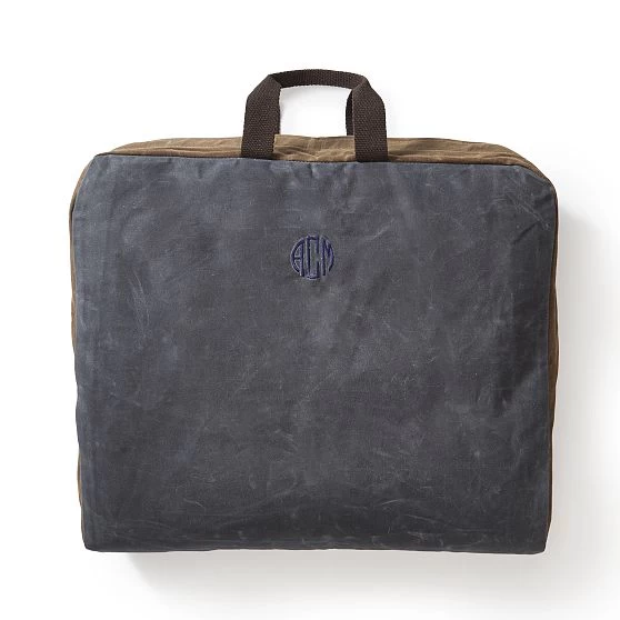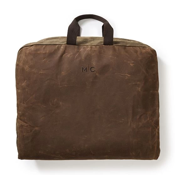Made to keep your finer clothing protected in transit, this garment bag is crafted from waxed canvas, which ages beautifully as scratches and scuffs add to its unique patina. Features a pair of handles for easy carrying or hanging, plus a large outside zipper pocket for shoes and other accessories. Makes a great gift for groomsmen, jetsetting dads and recent grads. Add an embroidered monogram for a personal touch.