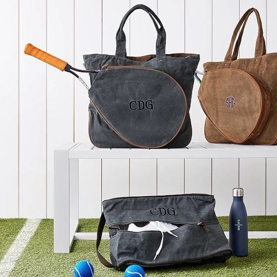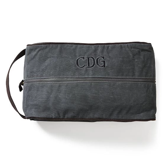 Stash your tennis shoes or golf cleats in rugged and reliable style with this waxed canvas shoe bag. Like high-quality leather, the waxed canvas looks and feels better the more you use it, and scratches and scuffs only add to its personality. Features a zipper closure and a carry handle. Use it to keep your gym bag organized or to keep shoes separate from clean clothes in your luggage. Add a monogram for a sophisticated personal touch.