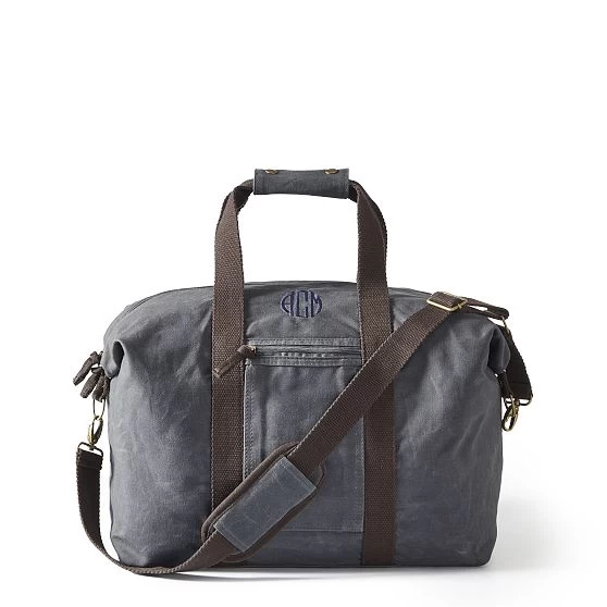A traveler’s take on a timeless style, this bag is designed for weekend trips away with practicality in mind. Crafted from durable canvas with a wax coating that ages beautifully, it features a padded crossbody strap for easy carrying and an outside zipper pocket for quick access to essentials. Can do double duty as a gym bag or a boarding bag for the plane. Add a custom monogram for a personal touch.