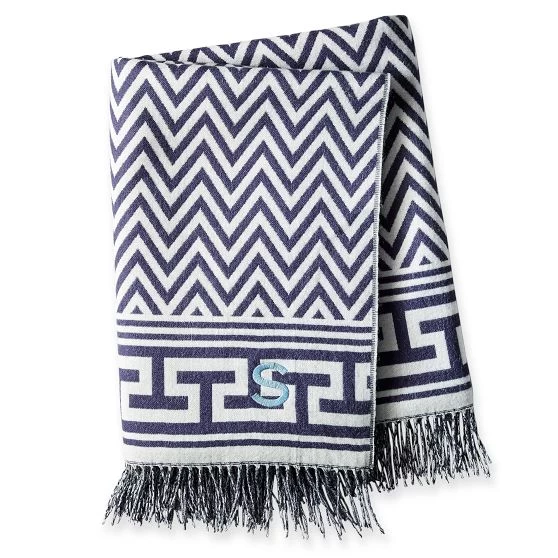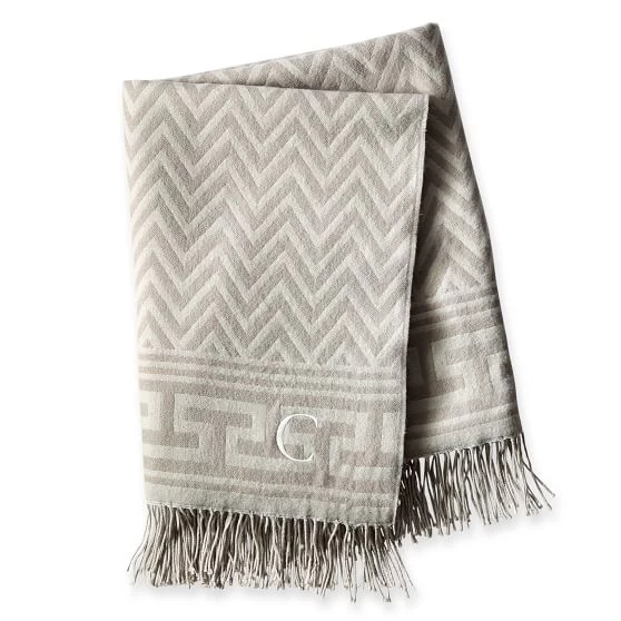 Meet your new favorite throw. Woven with a modern zig zag pattern and finished with tassel fringe and a beautifully embroidered monogram, this super soft throw makes an easy gift for your favorite person – or yourself!